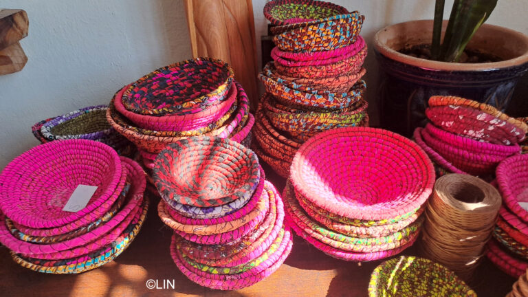 Handmade fabric bowls made from the fabric of the traditional Oshiwambo dress, which holds great cultural and social importance among the Oshiwambo community.